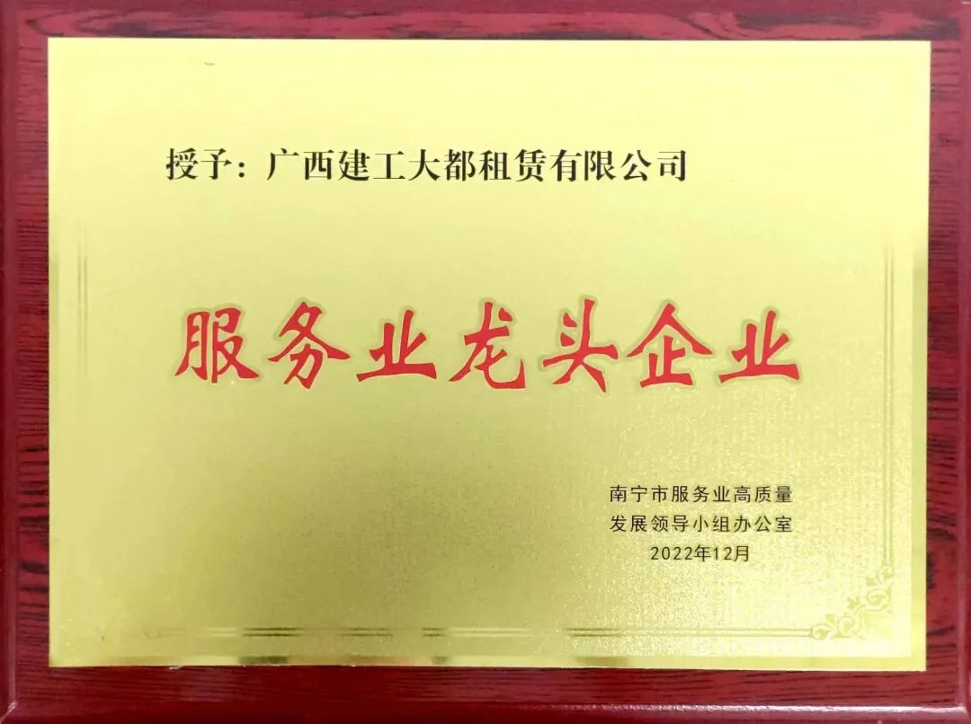 11月3日,南宁市人民政府召开南宁市2023年服务业“百企见面会”暨服务业龙头企业表彰大会。广西建工大都租赁有限公司获得南宁市“服务业龙头企业”称号,并作为企业代表上台领奖。▲获奖奖牌本次奖项为南宁市